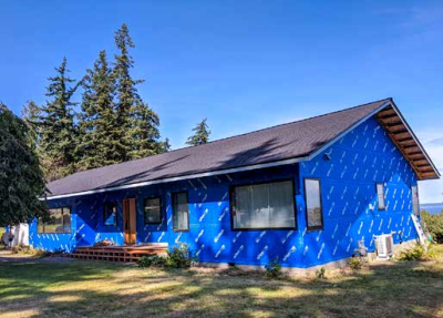 - Air Sealing: 1.34 ACH50, all edges and holes sealed with joint sealer, vapor air barrier with sealed edges on existing roof deck, self-adhered WRB over existing sheathing.