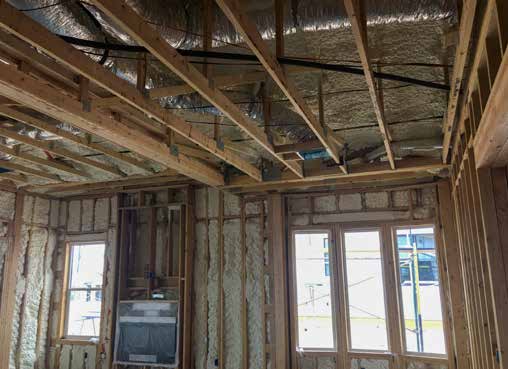 • Walls: 2x6, 16" o.c., R-21 total: advance framed; R-21 open-cell spray foam in cavity, house wrap, exterior lath, stucco.